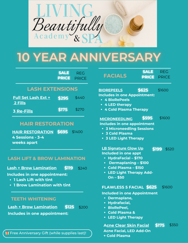 Ten years ago, Living Beautifully Spa & Academy began with a leap of faith, a dream, and a deep passion for helping others feel confident in their own skin. What started as a solo vision has grown into a trusted space for beauty, education, and transformation.